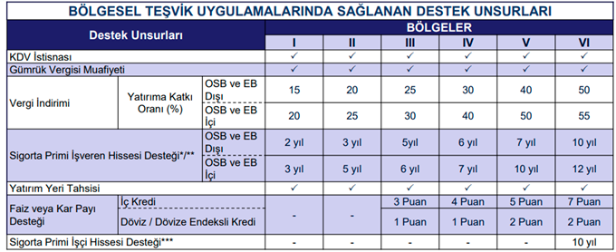 Bu destek unsuru, stratejik yatırımlar, Ar-Ge ve çevre yatırımları ile 3., 4., 5. ve 6. Bölgelerde bölgesel teşvik uygulamaları kapsamında yapılacak yatırımlar için uygulanır.